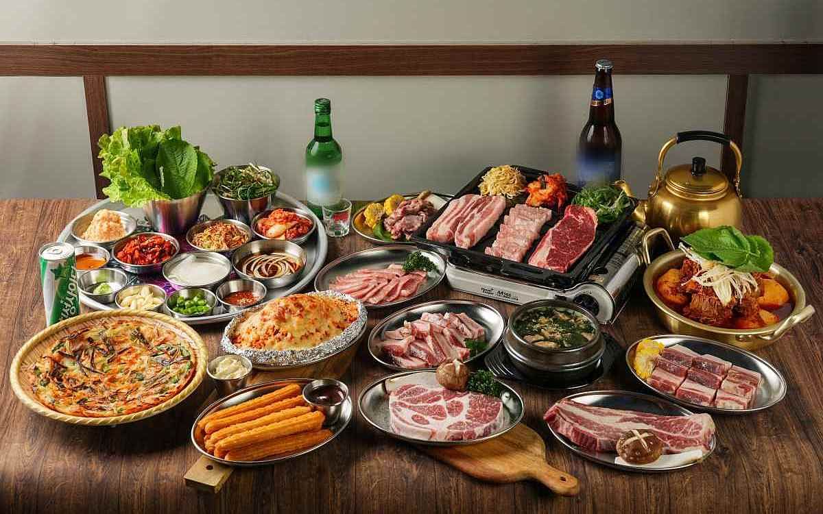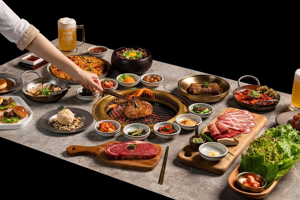 保留韓式烤肉道地餐點、口味和吃法,原塊厚切的「國產豬五花三吃」是店內首推的主打菜色,這樣的設定讓不吃牛的用餐者也能吃得盡興!第一吃為「黃金鑄鐵燒」,邊是利用這款韓國進口鑄鐵壓肉板,將厚實的豬五花肉逼出多餘油脂後,讓肉片擁有金黃色外衣和酥脆口感!第二吃是「罪惡濃起司」,以牽絲的誘人莫札瑞拉起司包覆豬五花,大口放入口中,感受肉汁與起司交織的美好,極致罪惡。 第三吃法則是「爆炒醬羅勒」,這個吃法是由主廚特地到韓國考察回來所研發,以羅勒與秘製韓醬一起爆炒豬五花,吃起來鹹甜相間,意外地充滿台式風情。