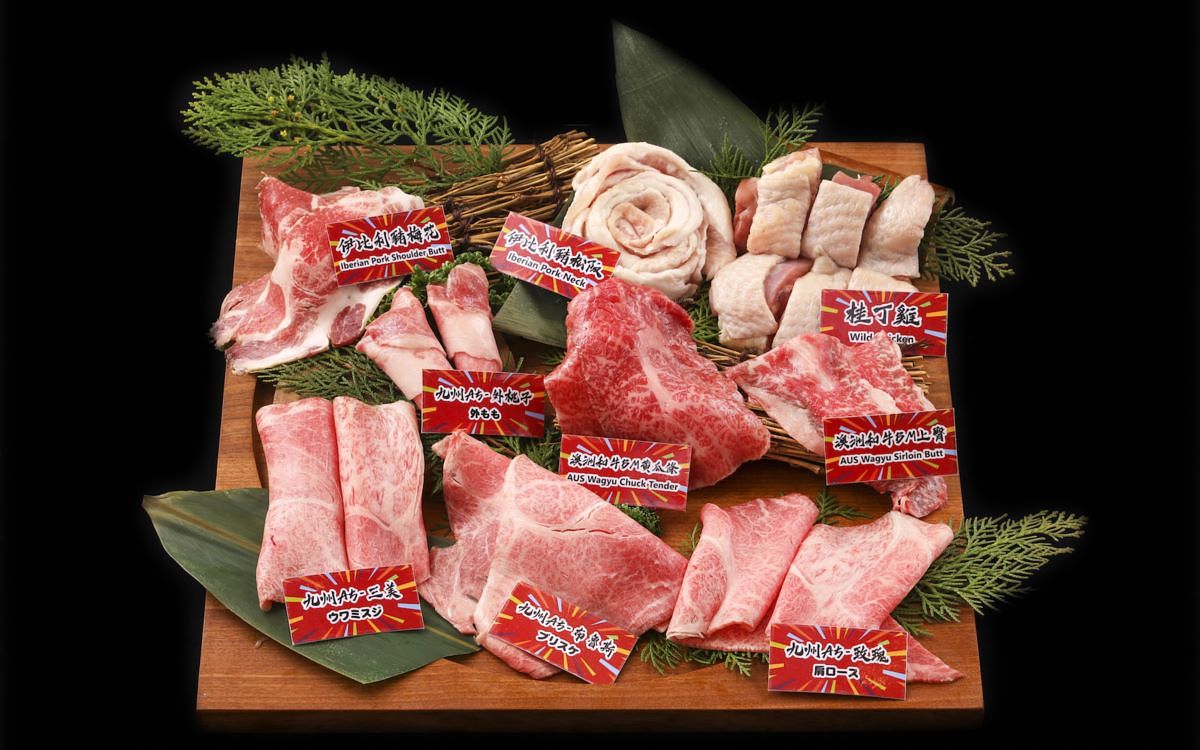 以單片38元起享日本A5和牛為主打的『鉄火燒肉』,在快節奏的微風台北車站二樓站穩腳步後,二店轉戰信義區,看準商圈消費力道,『鉄火燒肉』微風信義店獨家推出1,588元日本A5和牛三拼套餐,含日本A5和牛霜降、雪花、赤身不同層次油花,搭配伊比利豬、橫膈膜、板腱,一次盡享六種肉品組合。