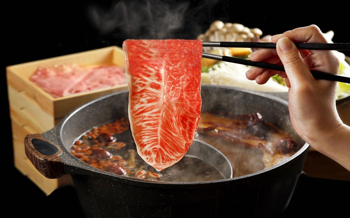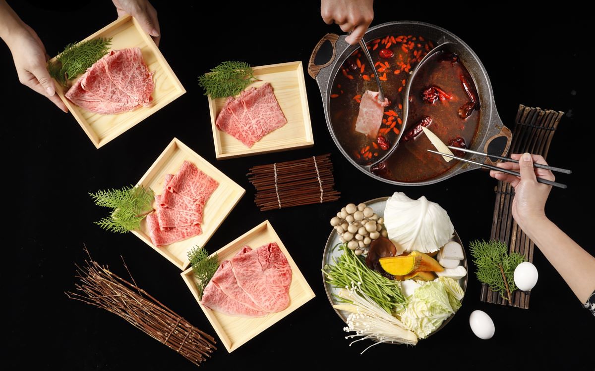 微風信義『和牛祭』採用鴛鴦鍋方式供應,六款風味湯底從爽口到濃郁、甘鮮到麻辣,各具特色。消費者可選擇喜愛的湯底涮煮日本A5和牛、限量M9+等級的澳洲Blackmore 全血黑毛和牛、帶有榛果芳香的西班牙伊比利豬或自然放牧的台灣國宴桂丁雞等…各式頂級肉品暢快享用。