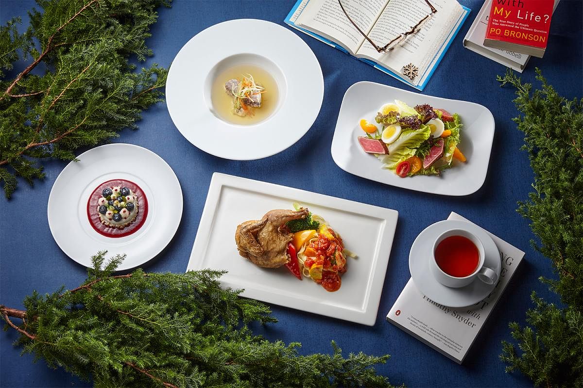 The Chapter Café於12/24-12/31午晚餐時段推出「喜閱耶誕跨年套餐」包含前菜、湯品、主菜、甜點及飲品。主菜一次匯聚四款經典人氣料理,配菜全面升級。首先推薦「燒烤法式春雞/ 山葵番茄麵」,經過烘烤的春雞,口感外酥內嫩,肉汁飽滿香甜;「米蘭式小牛肋排/ 山葵番茄麵」,嚴選來自純淨無汙染紐西蘭的小犢牛,肉質軟嫩多汁富含膠質,放入烤箱直接烘烤至5-7分熟,肉汁完美封存。另還有「白蘭地海大蝦/ 蘑菇薏仁米」及「碳烤紐西蘭羊排/ 蘑菇薏仁米」二道海陸料理,餐後甜點則提供質地溫潤紮實的「開心果磅蛋糕」。