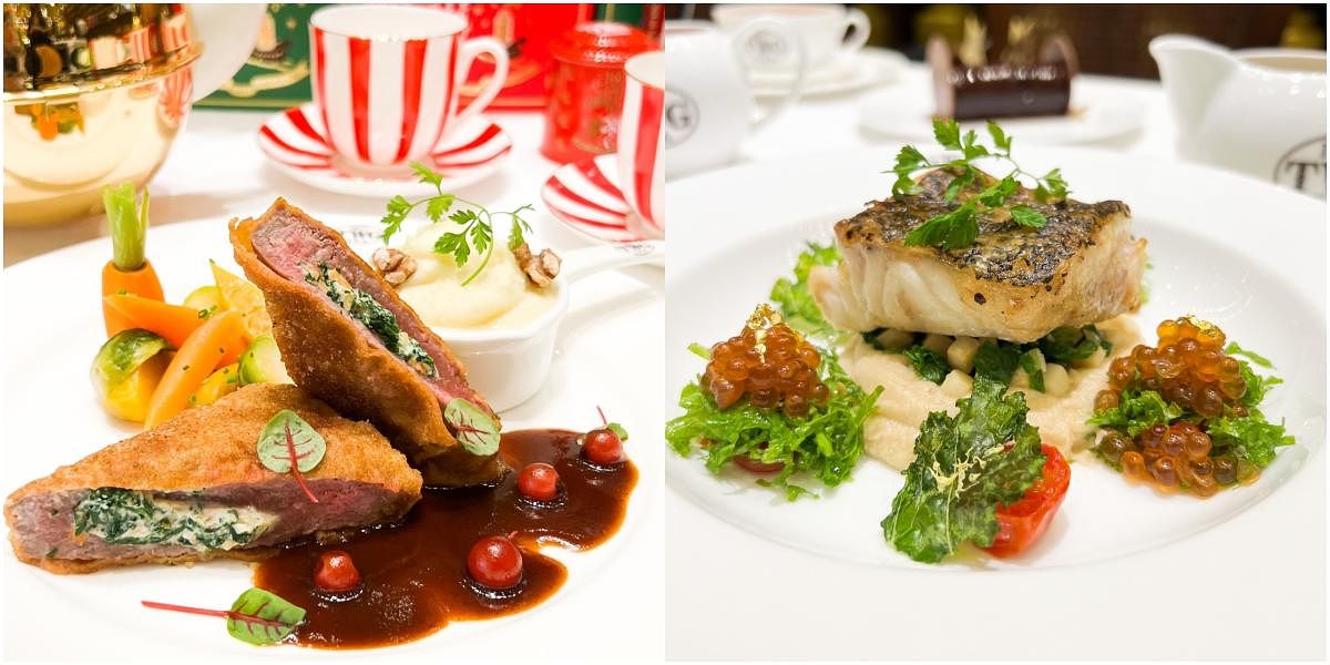 TWG Tea延續佳節溫馨的盛宴,推出年度限定「聖誕茗茶套餐」,內容包括每日湯品、茶香麵包、限定主餐、主廚創作甜點與一壺佐餐茗茶。主餐方面有奶油菠菜松子羊鞍里肌佐時蔬,以及爐烤石斑2款可選擇,兩款分別以波本香草紅茶與艾方索黑茶入饌,吃起來清爽又鮮甜。