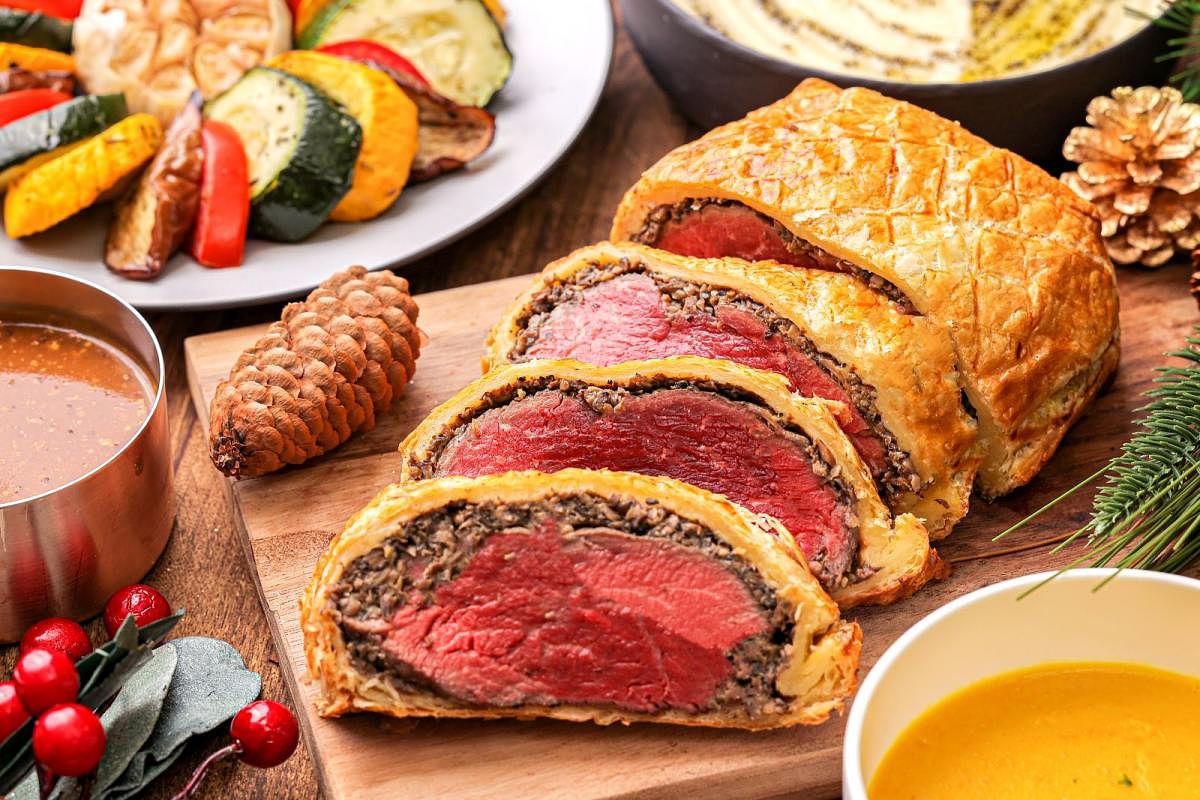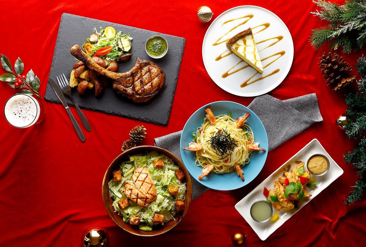 ROBINS’S牛排館推出「平安夜饗宴」,套餐內容包括油封鮭魚.柚子.蒔蘿庫利、栗子湯.青蘋果.松露、搭配波士頓龍蝦.香料奶油與經典ROBIN’S沙拉吧,主菜可選擇西班牙伊比利豚上蓋肉、美國頂級肋眼牛排、或澳洲榖飼200天戰斧雙人分享餐。甜點為青蘋果凝露.香甜酒冰晶,以及聖誕精選甜點。