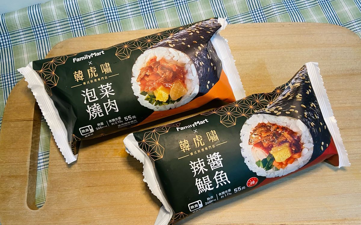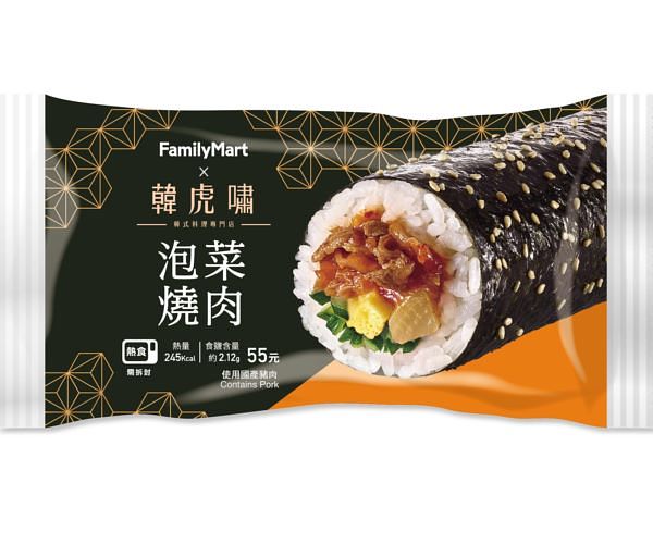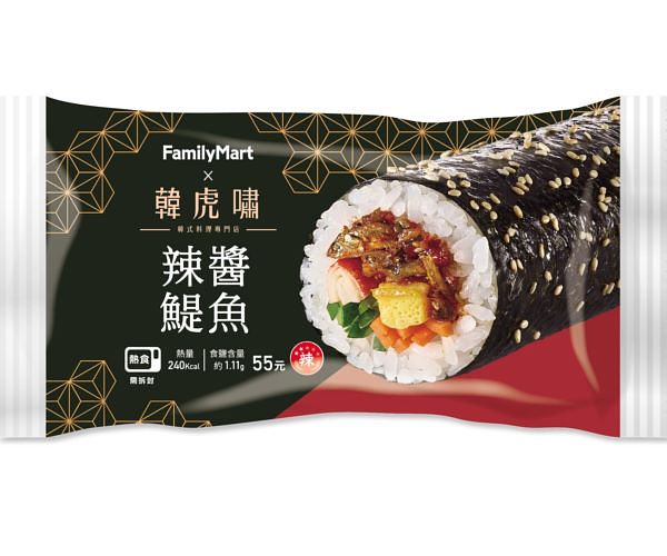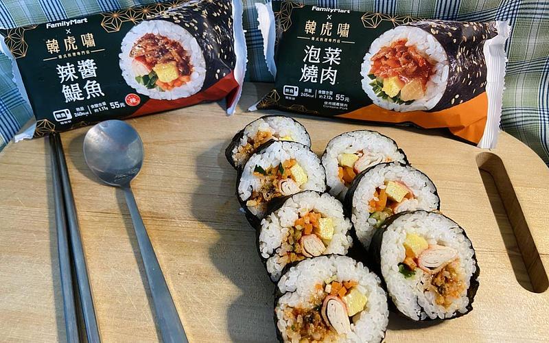 海苔飯卷是韓國家戶都會吃的國民美食,「全家」與知名韓式料理專門店「韓虎嘯」合作,選用韓國直輸的芝麻油、辣椒醬,韓國主廚親自調味,將韓味特色食材包進海苔飯卷,全新推出「辣醬鯷魚飯卷」、「泡菜燒肉飯卷」。首推辣醬鯷魚飯卷,辣醬鯷魚是韓國經常食用的特色小菜之一,口感微辣帶有甜味;泡菜燒肉飯卷泡菜餡料脆口,搭配鹹甜的韓式燒肉,呈現道地韓式口味,售價均55元。