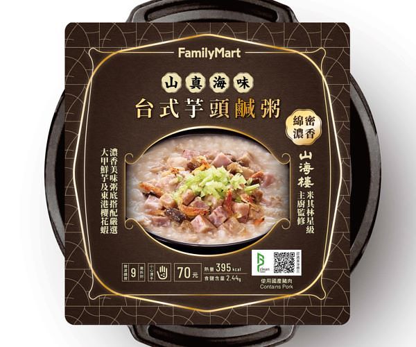 「山海樓」使用在地食材,烹製經典台式手路菜,從2019年起連續三年摘下米其林一星殊榮,今年更獲得《台北台中米其林指南2021》綠星獎。觀察台菜料理樣式豐富,口味為國人所熟悉且接受度高,從去年起「全家」與山海樓開啟聯名合作,受到消費者喜愛,也帶動主食、小吃類商品業績成長約2成,其中「台式芋頭鹹粥」是熱銷人氣品項。