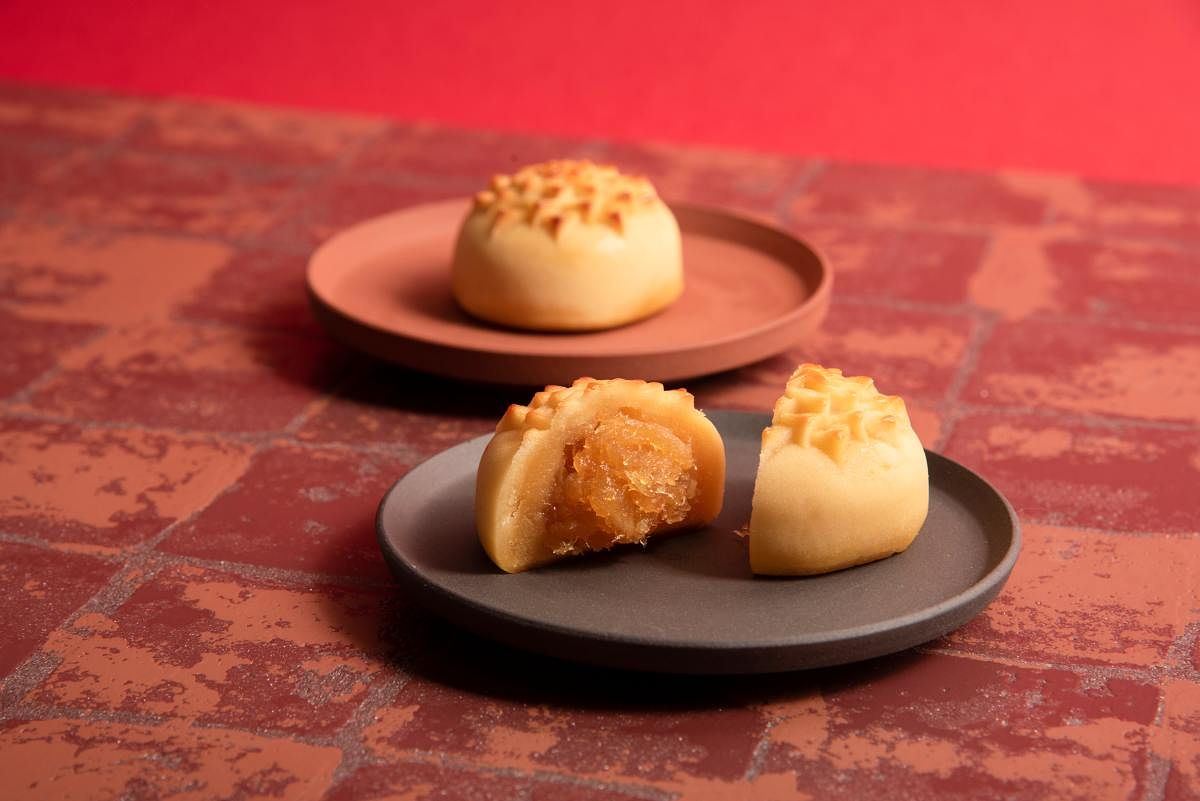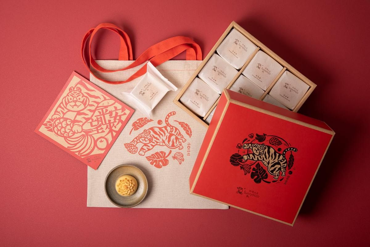 「微熱山丘」2022虎年限定旺來餅系列禮盒,以老虎積極又童趣的形象為靈感來設計,內含9個裝的「旺來餅」,結合經典台灣土產鳳梨醬與滑順奶黃,帶有迷人的酸甜鹹香,外層使用綿密的桃山餅皮,層層「鳳梨花」壓紋均勻烤色,呈現出花瓣華麗綻放的模樣。