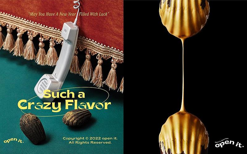 瑪德蓮專門品牌open it 自2021年8月開創至今只有短短的5個月,但身為一個新品牌卻總是帶來意想不到的創新點子,沒有新人蜜月期的藉口,品牌一直以這樣的理念開發新口味,不斷挑戰瑪德蓮的世界。本次2022年最奢華的虎年限定黑金口味,以大膽新潮的黑金主題展現年節特有的華貴感,從包裝的燙金虎紋,到選用象徵富貴的黃金野生烏魚子,再到法國頂級食用級金粉使用,每一個環節都顯現送禮者的時尚品味,更能讓收禮者感受獨特用心。open it 2022虎年限定黑金禮盒,一甜一鹹新潮創意組合共八入,售價NT $880,門市現場還享第二件加價購NT $600優惠,年節送禮最時尚的甜點選擇就在open it。