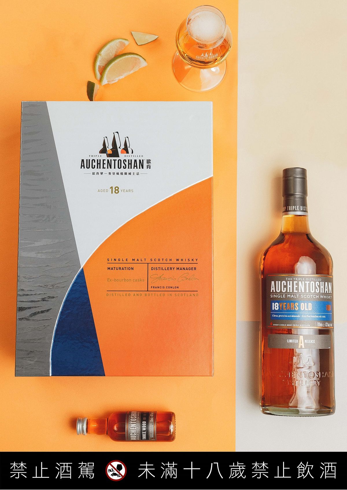 「Auchentoshan歐肯單一麥芽蘇格蘭威士忌」推出3款虎年新年禮盒,精選歐肯12年、歐肯三桶與歐肯18年單一麥芽蘇格蘭威士忌,禮盒的外觀設計上採用品牌最新視覺,以當代潮流風格拼接白、暖橙、藍色三個主色調。