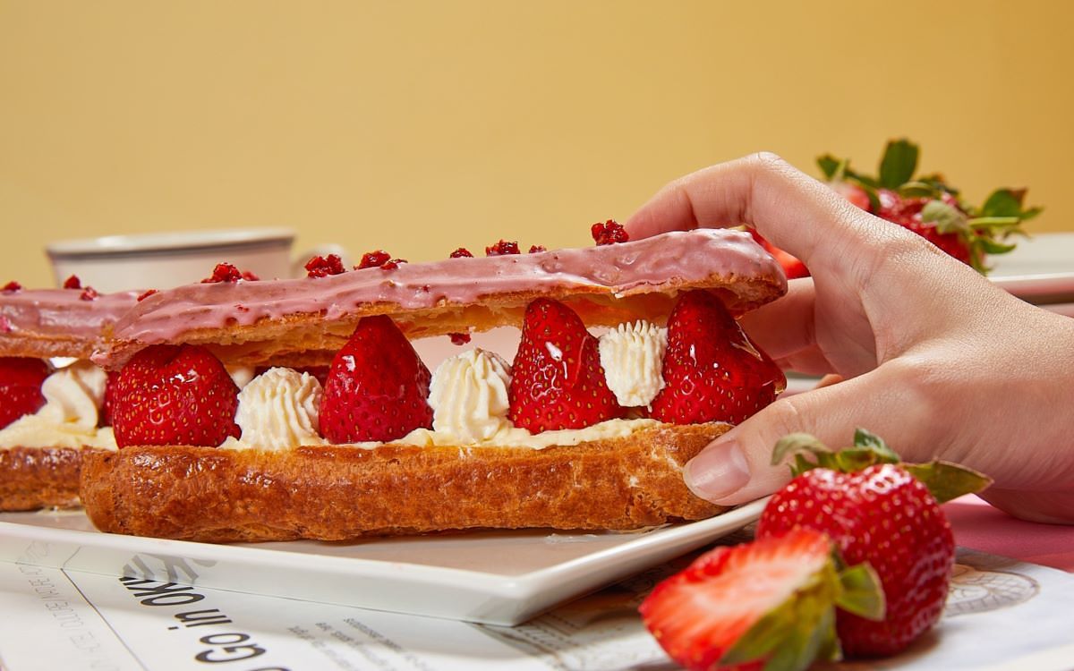 PAUL的閃電泡芙系列總讓鐵粉愛不釋手,今年草莓季的「草莓脆脆閃電泡芙」更是令粉絲驚豔,將整顆大湖草莓擺放至法國直送的泡芙殼裡,擠入香濃卡士達香緹,再將泡芙殼沾上紅寶石巧克力醬,最後撒上覆盆子碎,這繁瑣細節打造出目光聚焦的甜點,可是坐擁一大票粉絲呢。草莓脆脆閃電泡芙 $195