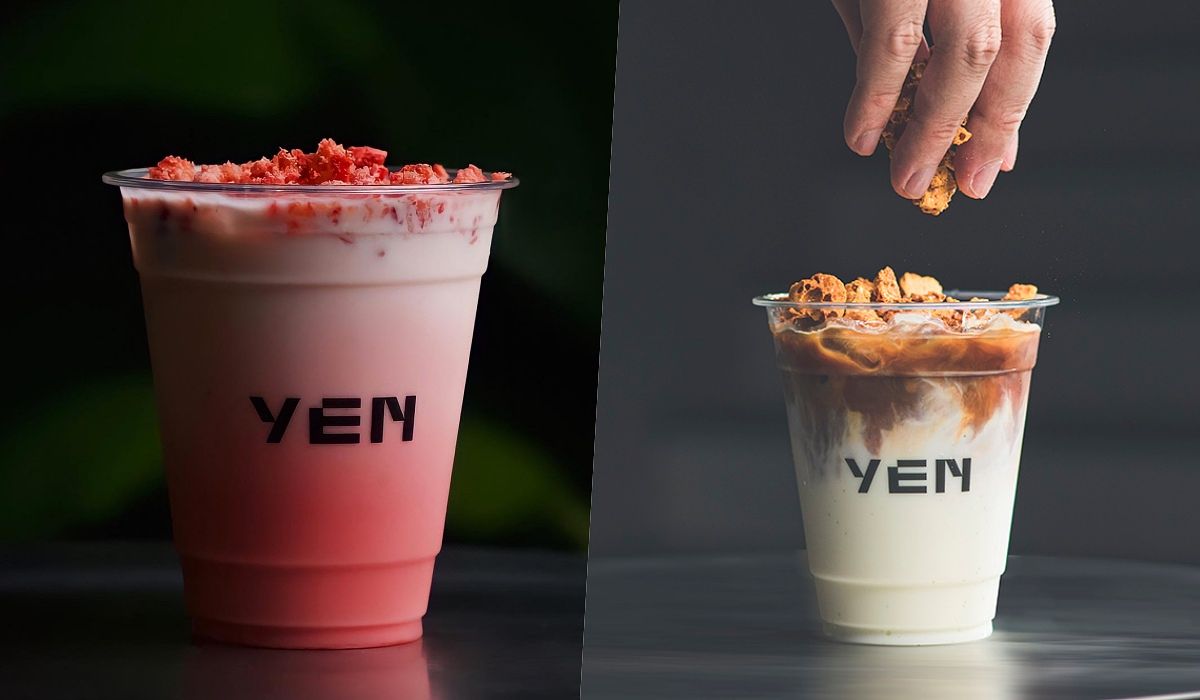 一樓為「YEN 円」Coffee Bar,「單品手沖等級」專屬配方豆,所有咖啡品項都帶有其強烈風格,除了美式咖啡外,還有各式滿充滿特色的特調咖啡:匹配店內裝修風格的招牌飲品「水泥拿鐵」以強烈對比的黑白色調,搭配濃郁奶香的拿鐵暈染出高顏值外觀,或是加入手工炒製焦糖餅的「焦糖脆餅拿鐵」,以及冬季限定的「草莓脆脆鮮乳」。