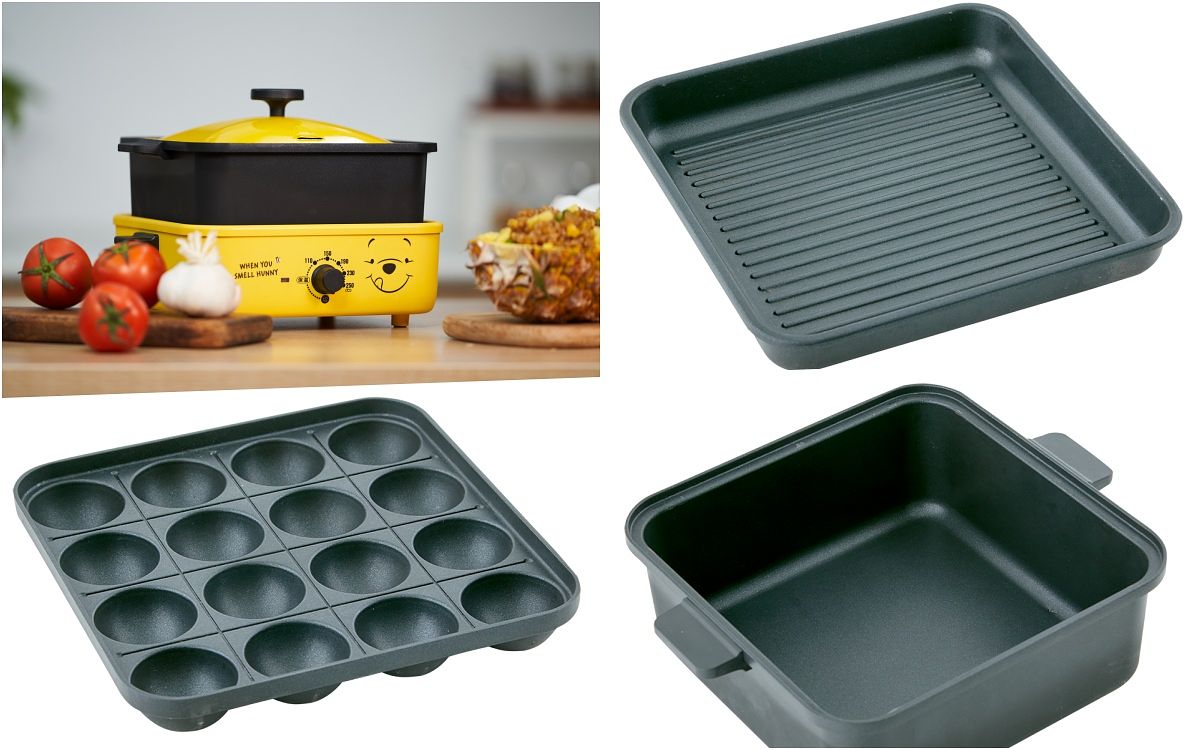 可愛的黃色機身,採取分離式的設計,搭配不沾塗層烤盤,想要蒸煮涮煎都沒有問題。搭載五段溫控與保溫功能,以及三款烤盤提供多種烹飪方式,是小家庭的必備小家電!