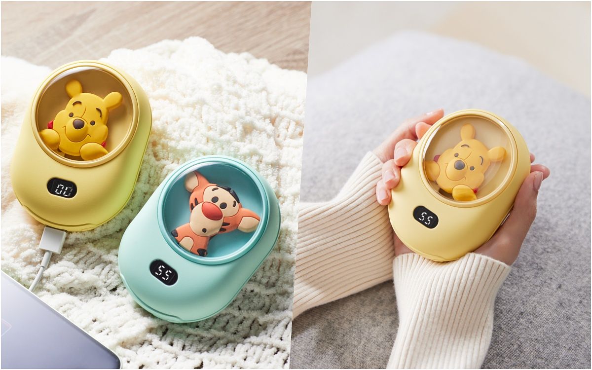 可當作暖手寶也同時是行動電源,一機兩用,可說是可愛與實用兼具的實力派,除了黃色的維尼款,也有好朋友跳跳虎款!開啟後五秒迅速升溫,順熱不用等,可調45/50/60 °C三段恆溫,搭載過熱保護機制,使用上安全無虞。另外還有小夜燈設計,黑暗中發光超療癒。