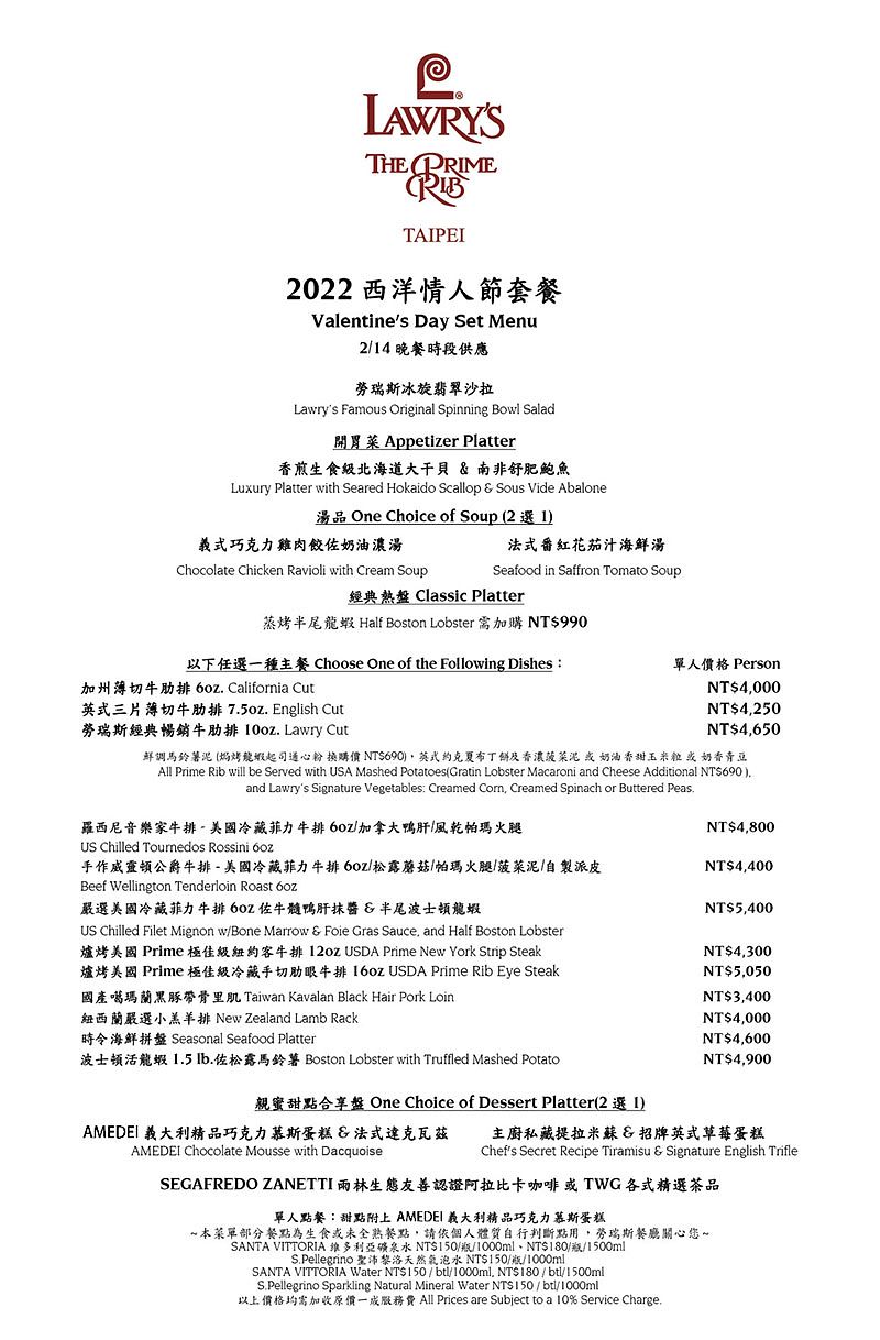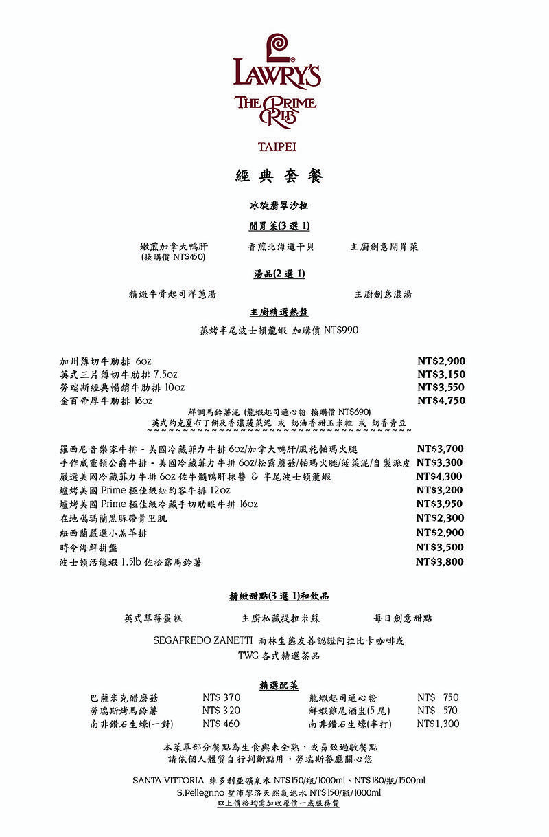 1. 勞瑞斯牛肋排餐廳 Lawry's The Prime Rib Taipei