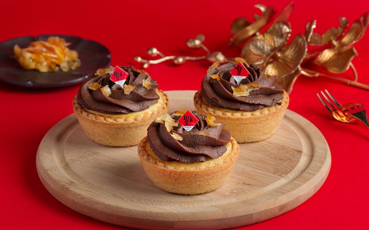 將日本原裝進口、利用糖及橙皮酒醃漬後橘皮絲鋪滿迷你經典原味起司塔面,並擠上使用比利時73%黑巧克力製成的巧克力卡士達醬,可可的甘苦香氣與清香的橘皮相輔相成,略帶酒漬的風味提升陳香底蘊,與濃醇的起司塔一同入口堪稱絕配,虎年好桔利!