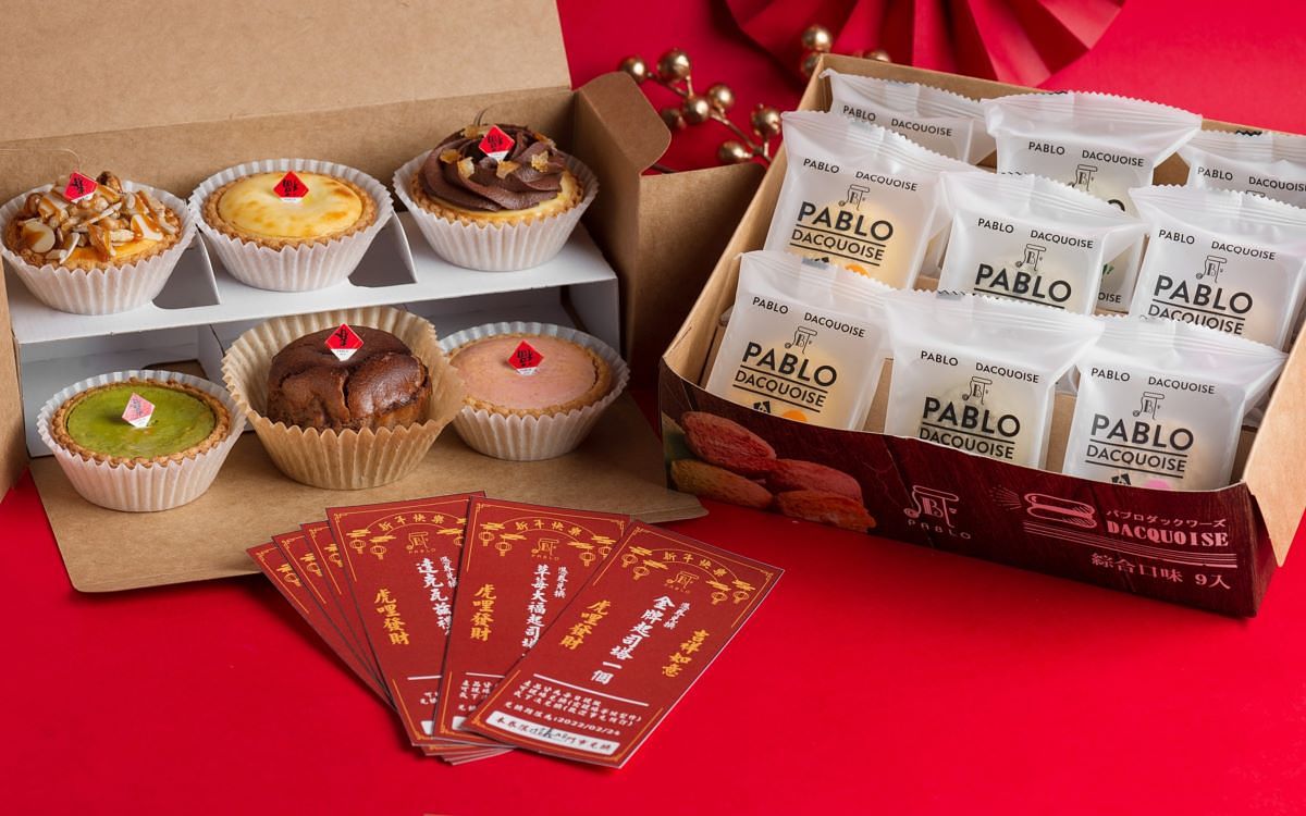 為迎接新年到來,『PABLO』同時舉辦新春福袋活動:1/27起凡於指定門市購買「PABLO迷你任選六入禮盒+達克瓦茲乙盒(均一售價:800元)」,即可獲得紅包抽獎機會,有機會獲得金牌起司塔(售價:628元)、草莓大福起司塔(售價:588元)、經典原味起司塔(售價:340元)、PABLO迷你起司塔經典原味6入(售價:420元)、達克瓦茲禮盒(售價:358元)、PABLO文青帆布袋等超豐盛獎項,立即買立即抽,獎品可當場兌換。(福袋活動限定門市:台北信義新光A8、台中中港新光、高雄漢神巨蛋、高雄SKM PARK,每店福袋限量30組,送完為止)