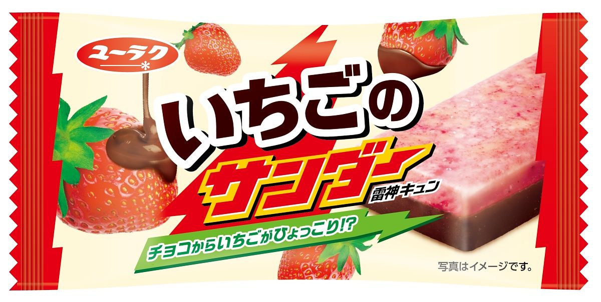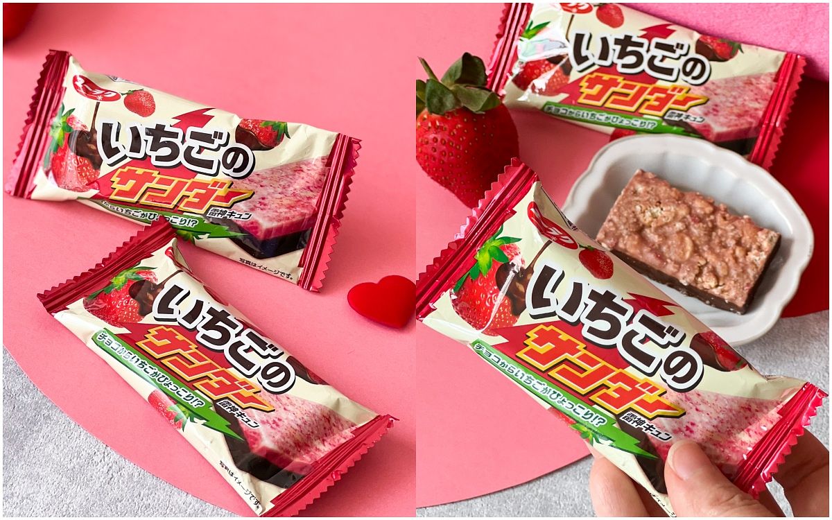 日本雷神季節限定口味,上層是酸甜草莓,搭配下層醇濃巧克力。