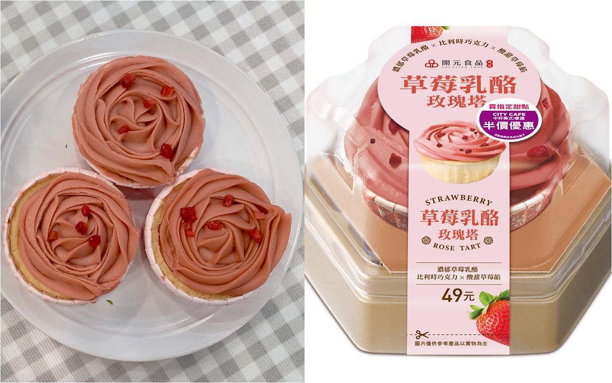 製作成浪漫玫瑰塔外型,濃郁草莓乳酪搭配比利時巧克力與酸甜草莓醬,不但長得好看,有層次感的滋味讓人吃不膩。