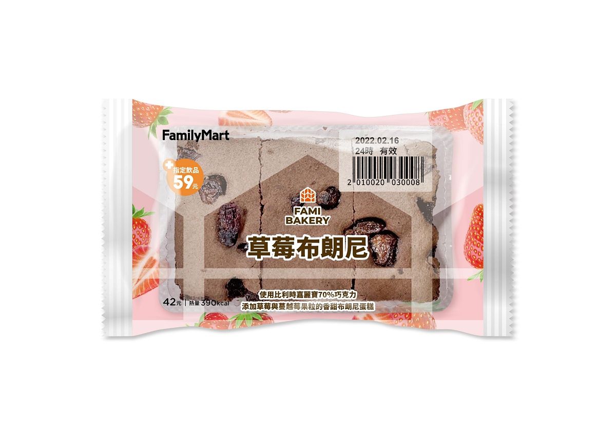 巧克力的經典商品「布朗尼」加入草莓果乾與蔓越莓乾,讓濃郁的巧可力滋味多了莓果獨有的香甜。