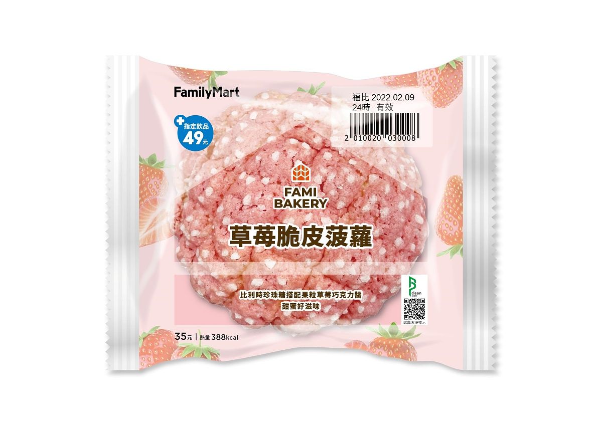 日式經典菠蘿,在表面有可愛的珍珠糖,咬下時增添酥脆口感。此外內餡為果粒草莓巧克力醬,咬下的瞬間就能獲得滿滿的驚喜感。