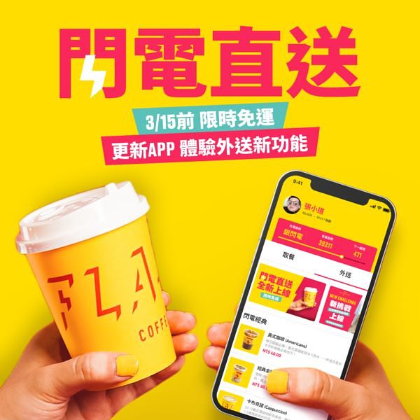 即日起至3月15日止,「閃電直送」限時免運費,新上線的外送服務功能,就要讓你咖啡揪團開到最大,不僅享超激優惠,更享即時外送超方便!除了可以體驗懶人的外送福利之外,透過 FLASH COFFEE 的外送服務也可為會員累積閃電點數回饋,作為下次訂購折抵現金使用,而每筆訂單累積的會員點數更有助於提升會員等級,即有機會獲得免費產品、限量周邊與獨家活動邀請等高階會員福利。