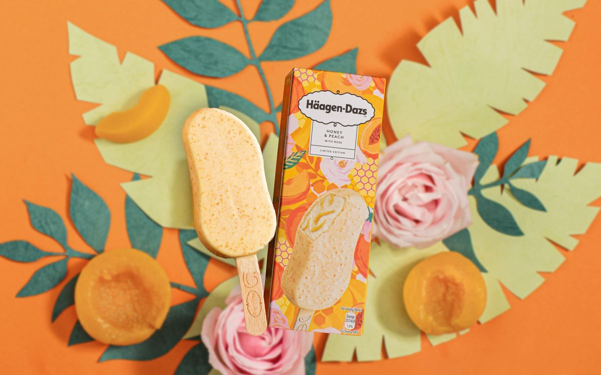 每年春季,Häagen-Dazs總會帶來令人驚喜的限定新品,今年除了熟悉的花果風味,首度加入誘人的金黃蜂蜜,化作「蜂蜜葡萄柚冰淇淋」、「蜂蜜黃桃玫瑰冰淇淋」及「蜂蜜黃桃玫瑰脆皮雪糕」。每一款都添加至真至純的天然蜂蜜,入口後即刻感受到清甜香氣,也使得後調果香更加迷人,一口就能吃到幸福滋味