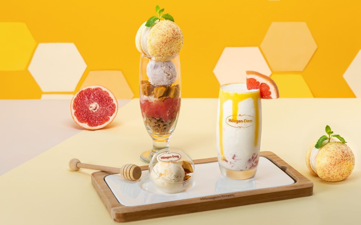 為了讓更多消費者體驗Häagen-Dazs春季蜂蜜系列的多層次美味,Häagen-Dazs門市帶來多款期間限定的春季餐點,全新盤餐「繽紛柚惑」、「柚香蜜醉優格飲」與聖代「柚見桃憩」,不僅一次能品嘗清新柚香與蜂蜜系列冰淇淋,更加入創意巧思,美味之餘還能體驗互動,讓心情有道不盡的春光明媚。