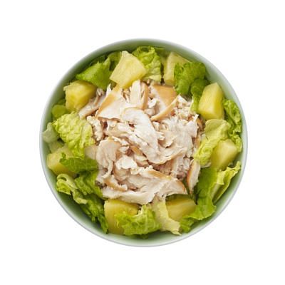 少油低負擔的煙燻雞胸肉,搭配金黃鳳梨角及新鮮脆口的綜合生菜,佐以甜中帶點酸的千島沙拉醬,是蛋白質與蔬果的均衡組合。