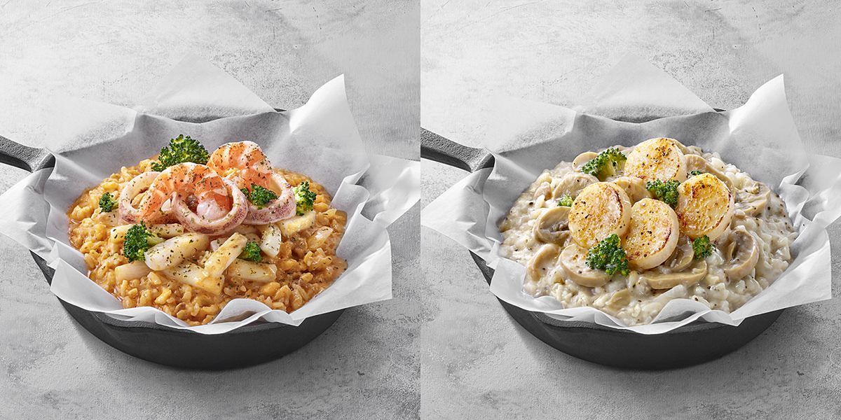 必勝客自2020年推出義大利麵品牌Pasta Hut,6款「紙包筆管麵」深受上班族青睞,銷售表現亮眼,疫情之下更帶動必勝客業績翻漲三倍。這次Pasta Hut再度出擊,推出全新「紙包飯」系列,經過嚴格口味測試,嚴選出松露牛肝菌菇醬汁與粉紅醬,搭配干貝、鮮蝦等上選食材;採用必勝客獨特紙包封烤技術,以212度高溫封烤,快速鎖住食材溫度與精華,讓米粒與醬汁更能完美融合,創造出義式燉飯口感,比一般料理更加美味!現在起,不管是麵控還是飯控,到必勝客Pasta Hut都能一次滿足,無論是外帶或外送都能輕鬆享受義式美味!