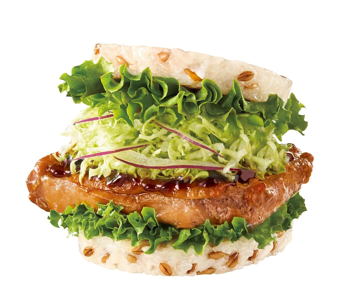 歡慶摩斯漢堡3/12生日慶,多項新品於3/11重磅上市!紅烏龍烤雞珍珠堡嚴選帶皮鮮嫩雞腿肉,以特調茶香醬汁醃漬入味後高溫烘烤而成,搭配用台灣紅烏龍作為基底熬製的茶香烤雞醬,加上新鮮生菜,夾入添加Q彈超級大麥的米飯,一口咬下,多層次口感與雙重紅烏龍茶香餘韻帶出典雅美味。超級大麥由澳洲研究機構開發,膳食纖維含量為一般大麥2倍,且為低升糖食物,能促進腸道蠕動、增加飽足感,為風靡日本的機能性穀物。