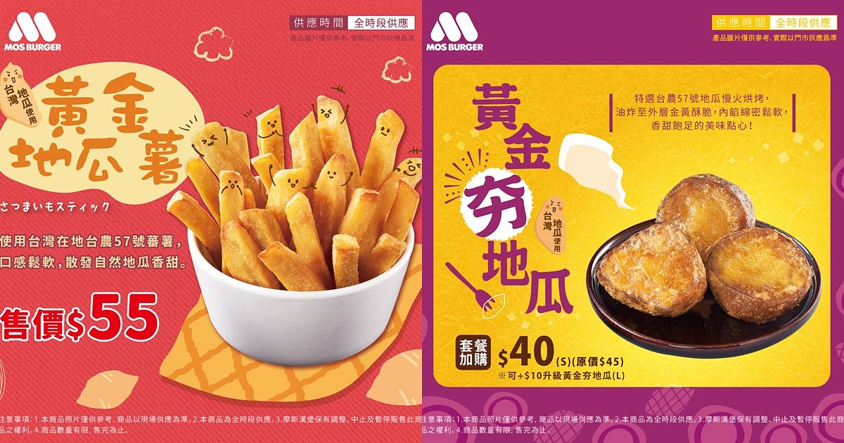 地瓜控的天堂!摩斯漢堡「黃金地瓜薯‧黃金夯地瓜」不同口感一次滿足!