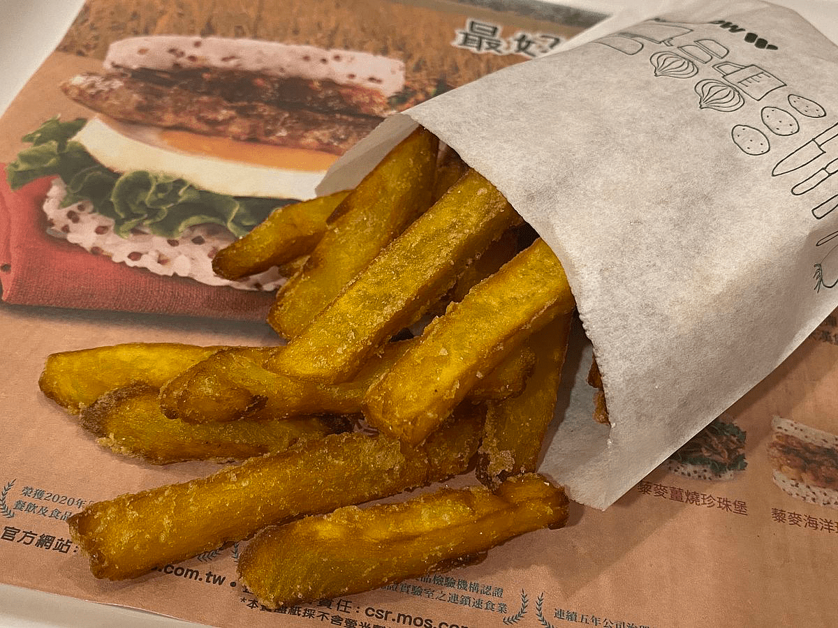 同樣使用台農 57 號地瓜製作的摩斯黃金地瓜薯,是期間限定又數量限定的夢幻逸品。