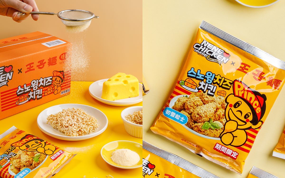 NENE CHICKEN 於 2018 年進入台灣市場以來,持續同步韓國、推出全新炸雞口味的同時,特別結合台灣在地特色,攜手台灣知名食品大廠「味王公司」限量推出「期間限定」王子麵 - 分別為「初雪起士王子麵」、「神奇辣起士王子麵」,聯名商品使用 NENE CHICKEN 兩大熱銷口味「初雪起士炸雞」及「神奇辣起士炸雞」獨家調味粉,結合王子麵香脆麵體,為台韓經典聯名再掀一波跟風熱潮。聯名王子麵將於 3 月 28 日起於蝦皮通路獨家開放預購,共限量 5,000 箱,一箱10包入,售完為止。
