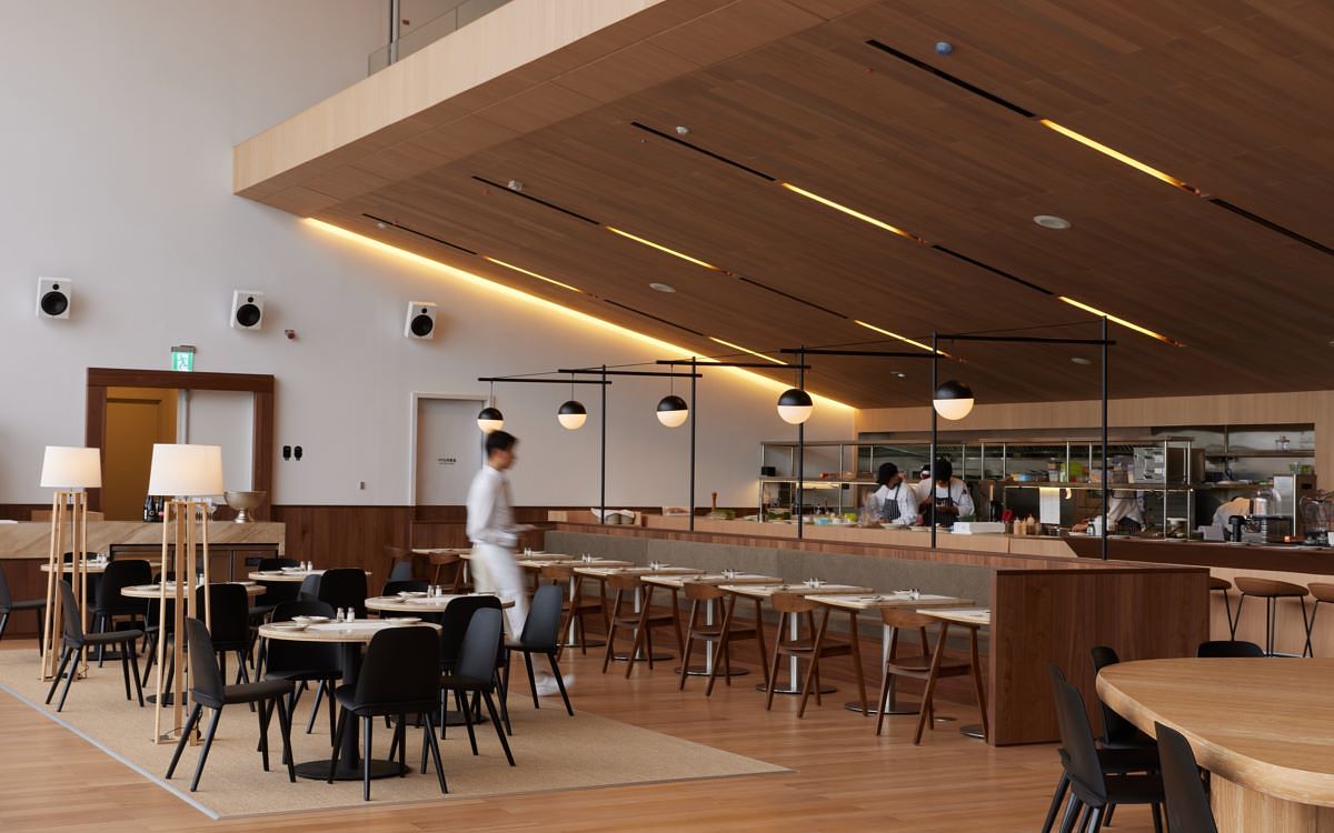位於北藝中心七樓,餐廳緊鄰場館最具特色和話題性的球劇場;相較過去西門的白淨輕鬆,室內整體主調更為溫暖明亮,環繞藝術氣息的環境及升級餐點,要帶來不同以往的早午餐體驗,透過兩層樓高的落地曲面玻璃,全室內座位皆擁有最舒適的自然光。