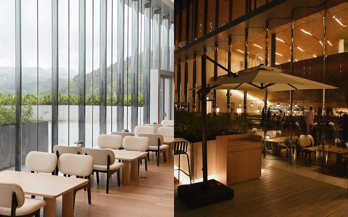 餐廳更享有場館唯一的天空花園,200坪的戶外空間規劃寬敞座席,在這裡能遠眺白天的劍潭山景,日落下的微醺夕陽,天黑後俯瞰城市夜景,讓都市人繁忙的日常中能在這裡享受遠離塵囂的悠閒!