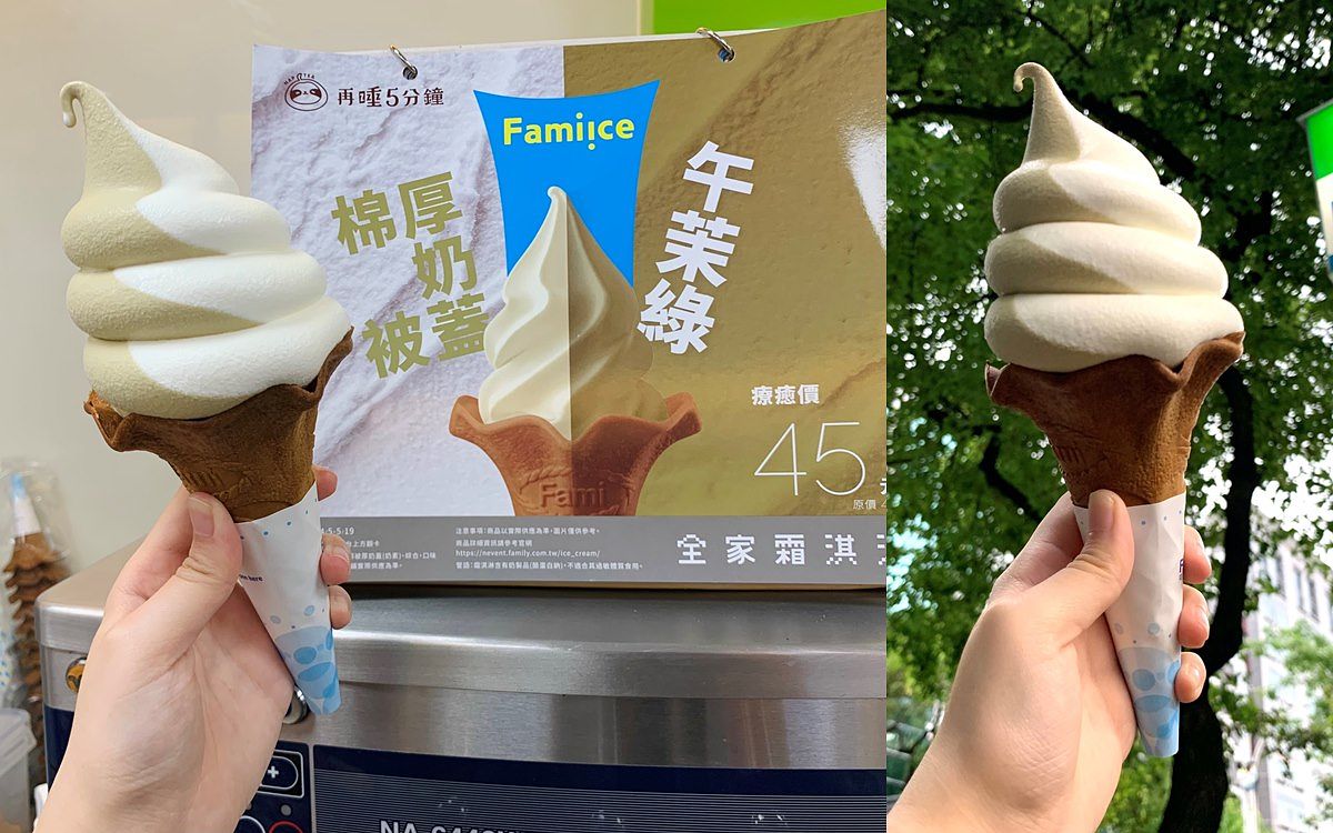 全家便利商店每每推出新口味霜淇淋,皆會引發一波討論與打卡熱潮,此次再創新與知名飲料品牌「再睡5分鐘」聯名,使用店內同款茶葉原料,經細磨後製成霜淇淋,入口即感受到濃郁茶香,總共推4款口味,分別為販售單口味霜淇淋店獨有的專屬口味─「日安紅濃茶歐蕾」,在販售雙口味霜淇淋店則推出「棉被厚奶蓋」和「午茉綠」兩種口味,若選擇綜合霜淇淋就是「棉被午茉綠」口味,神還原店內經典熱銷品項。4/5起於全台近2,000間Fami!ce霜淇淋販售店開賣,每款售價皆49元,4/5至5/19限期推出嘗鮮價45元。