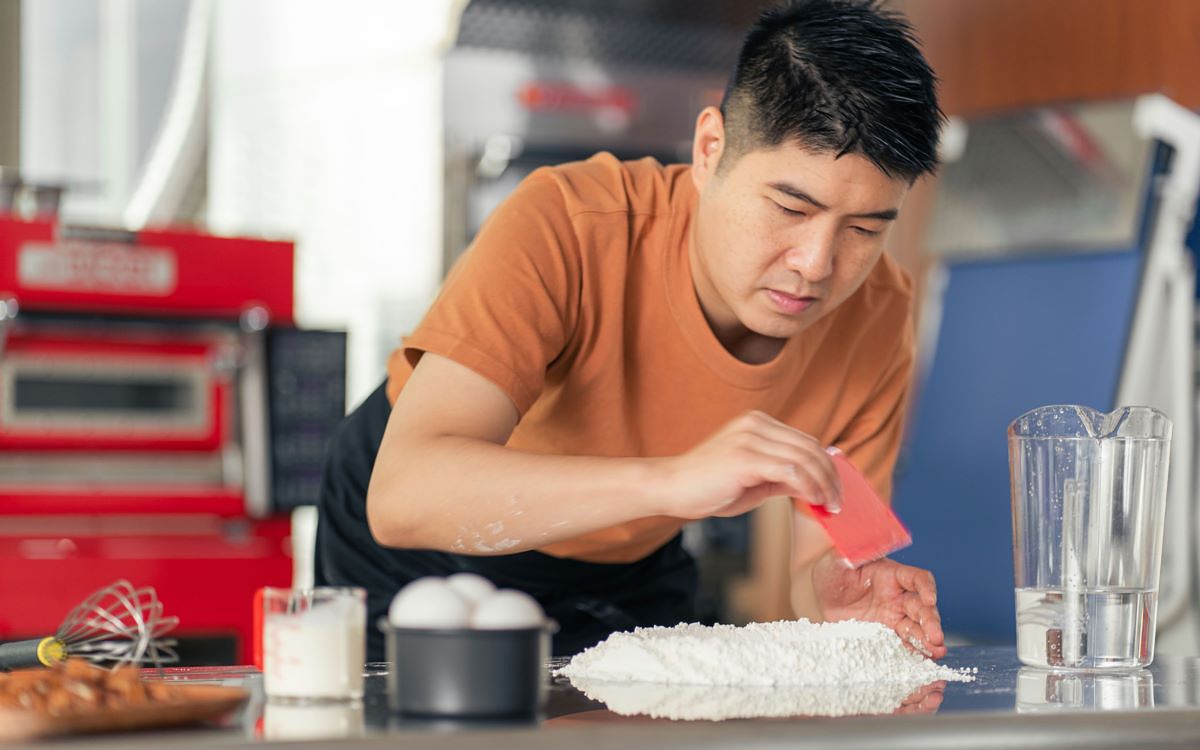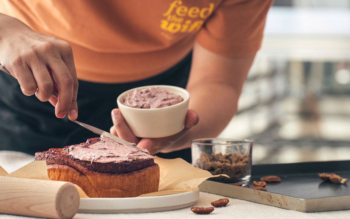 「玫瑰奶油乳酪肉桂捲」可說是兩人愛的結晶,吳克己主廚祭出擅長的麵團技術,為這款特別的肉桂捲量身打造麵團,選用加拿大小麥製成的麵粉為主角,以低溫長時間發酵,使用「直接種」製程,刻意將麵團口感製作得較為Q彈,能夠越嚼越香。出爐後刷上玫瑰果露,搭配肉桂香料與玫瑰奶油乳酪醬的絲滑口感,每一口都是讓人捨不得吃完的好滋味。Jack主廚則是發揮對香料及調醬的專長,以近乎苛求的標準打造心中的完美之作,譬如身為肉桂捲靈魂的肉桂極易氧化,但直接使用新鮮現磨的又會過於嗆辣,必須類似紅酒開瓶後,要稍微「醒」一下。為精準掌握食材最佳狀態,特別採用多個產區的高品質肉桂新鮮現磨,在最佳時間熟成後與豆蔻、柑橘皮等其他上選香料搭配,精算後的黃金比例能呈現最協調的香氣,讓不敢吃肉桂捲的人也願意嘗試。