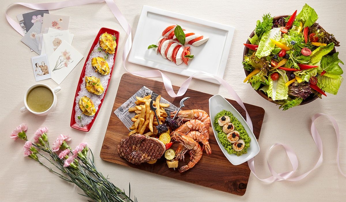 若偏好儀式感過節,君品酒店雲軒西餐廳也於2022年5月7日至8日,推出午、晚餐時段專屬用餐優惠,每位2,980+10%元即可享用「海陸饗宴」,提供主餐半隻活龍蝦與6盎司爐烤肋眼牛排的經典搭配,還可享繽紛沙拉吧無限供應超過20種的新鮮有機蔬菜、當令現流海鮮與多款日式料理,再加碼「片皮鴨捲」及「尊爵紅酒」無限量供應!