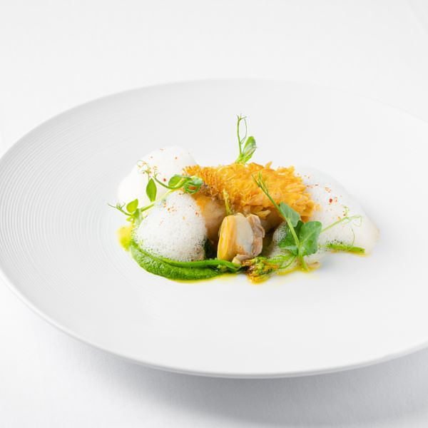 海瓜子高湯烹煮的泡沫醬汁,宛如徜徉在春日的海洋中。