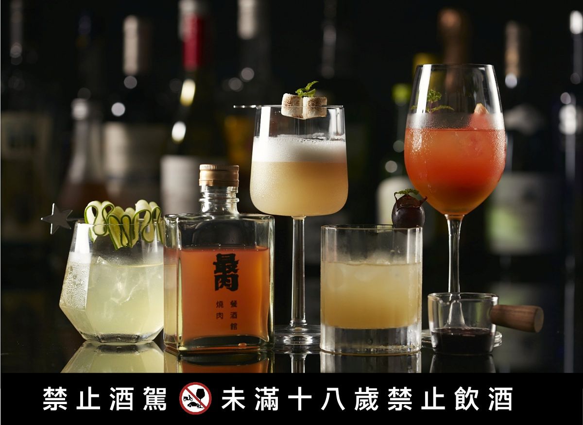 既然是燒肉餐酒館,特色調酒自然不可少!攜手2021 World Class世界調酒大賽台灣冠軍Mars Chang研發3款揉合台灣水果風味、適合搭佐燒肉的原創調酒。「辦桌」零感來自台式宴席常見的果汁組合,以無色無味、不搶鋒頭的伏特加為基底,襯托茉莉綠與烏龍茶香,搭配芭樂更顯清新,杯口還綴上炙燒過的棉花糖;喜愛熱帶風情首選「楊枝甘露」,白蘇維濃白酒帶柑橘芬芳,輕晃酒杯混合芒果泥與葡萄柚汁,帶來多層次變化;「癮形人」於桌邊注入散發梅李香氣的梅爾貝紅酒,紫蘇的清爽辛香襯托蘋果與葡萄柚的酸甜滋味。