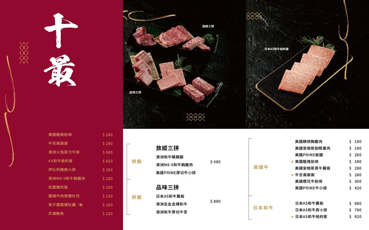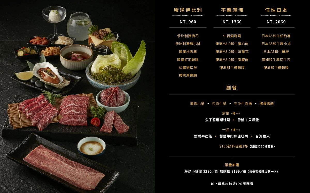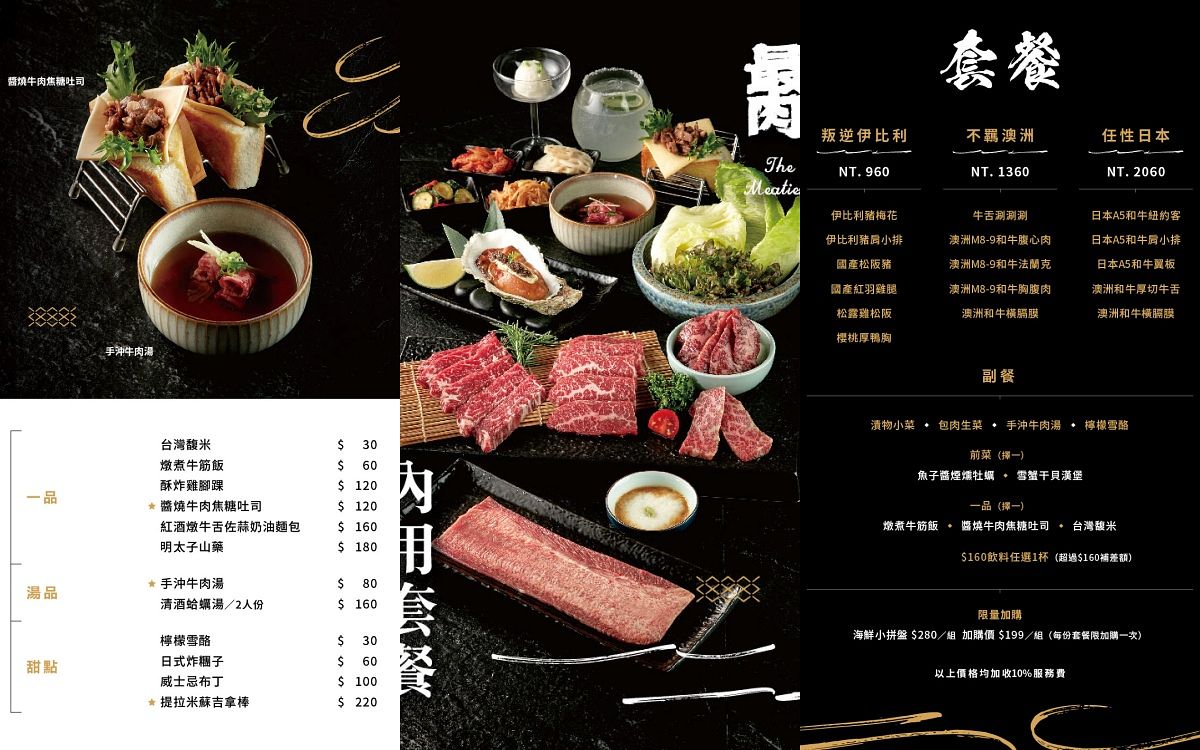 「最肉」定位為單點燒肉店,仍貼心設計三款套餐選擇,分別是伊比利豬、澳洲M8-9和牛、日本A5和牛,三款個人套餐。