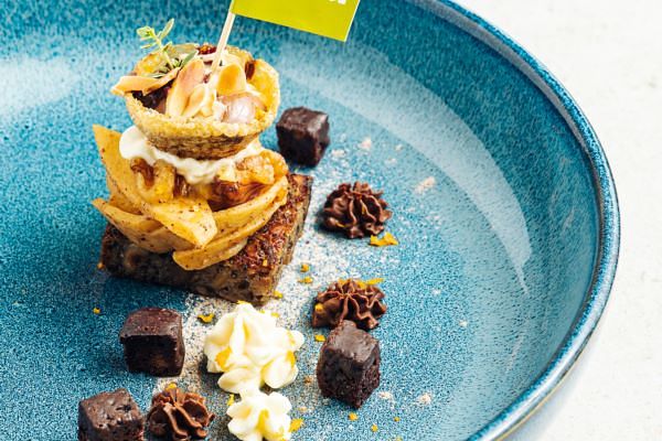 而地中海料理餐廳TOASTERiA CAFE以「焦糖蘋果米吐司」帶來最道地的地中海風情,摩洛哥香料焦糖蘋果結合烤綜合堅果米包,馬茲卡朋起司的綿密加上爽脆口感的印度酥炸球,白芝麻巧克力、酸甜酒燒野莓果醬與新鮮檸檬百里香,濃郁而不膩口,一旁的烤巧克力米包也恰如其分地增添豐富度,套餐搭配紅酒更完美展現以酒佐餐的地中海生活態度。