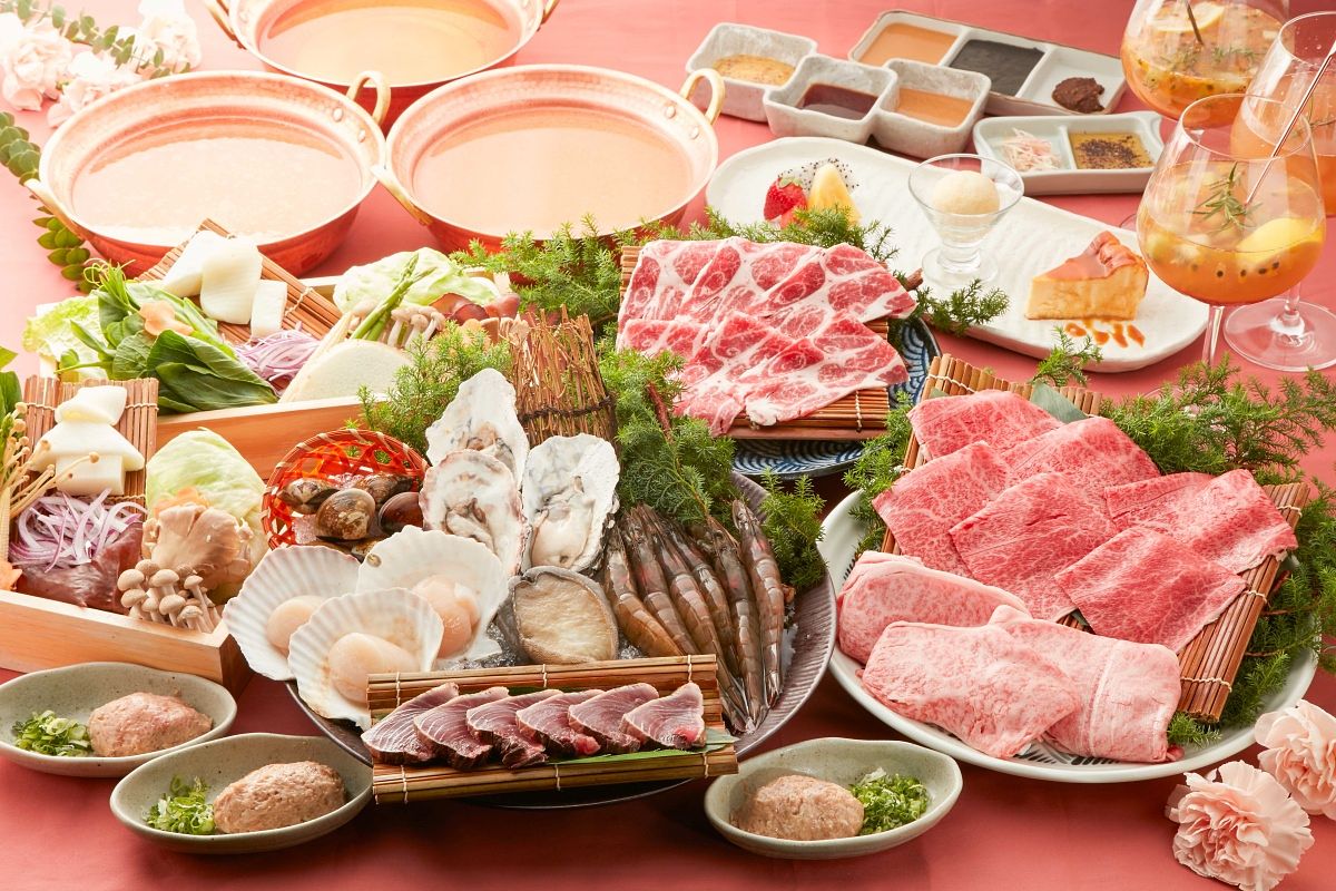 頂級日本鍋物品牌「黑毛屋本家」推出夢幻海陸雙享「馨動套餐」,雙人3,980元、三人5,970元,湯頭有季節限定春鰹鍋、涮涮鍋2種選擇,主餐享有頂級肉品拼盤與節慶海鮮拼盤,集結特選及上等日本和牛、西班牙Bellota伊比利豬,海鮮則主打生食級鰹魚、日本廣島縣產牡蠣,搭配北海道生食級干貝、鮑魚、蝦子、文蛤,打造一鍋網羅豪華海陸的頂級盛宴,外帶自取還享88折優惠。