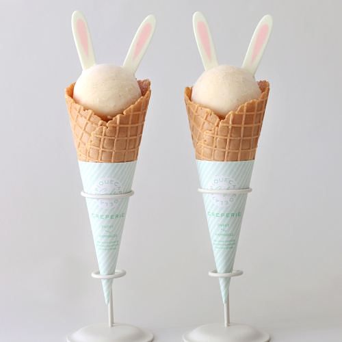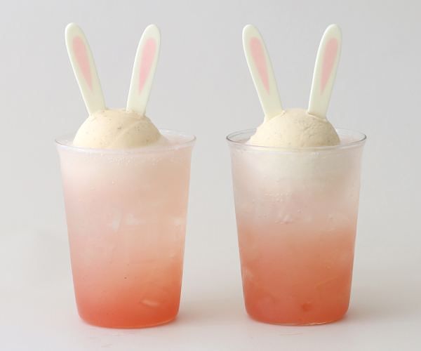 充滿童趣的「復活節兔子系列」用濃郁的牛奶冰淇淋裝飾兔耳多造型的巧克力片呈現白胖胖、可愛無比的復活節兔兔,無害的外表讓人忍不住想咬一口,經典款「復活節兔子可麗餅」以人氣法式奶油可麗餅搭配鮮奶油與卡士達醬;「復活節兔子漂浮氣泡飲」則是用水蜜桃果泥與葡萄柚果漿調製出淡粉色調基底,加入些許檸檬汁提味,香甜清爽,小兔子浮在粉嫩色系飲品上,更加夢幻;而夏日即將來臨,嚐嚐「復活節兔子冰淇淋」也是不錯的選擇!