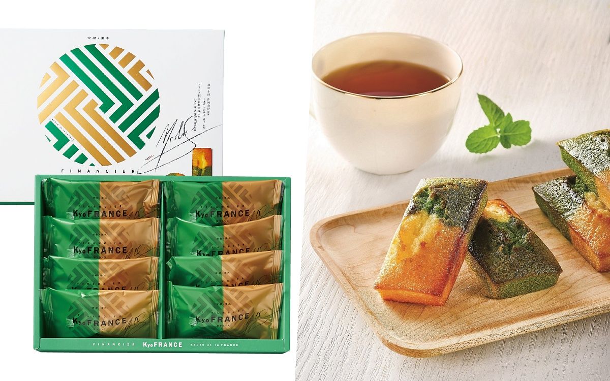 原料是由法國產發酵奶油,以及嚴選的京都產宇治抹茶「祥樂」所製成。以京都和法國交流的印象,融合出華麗雙色的費南雪。