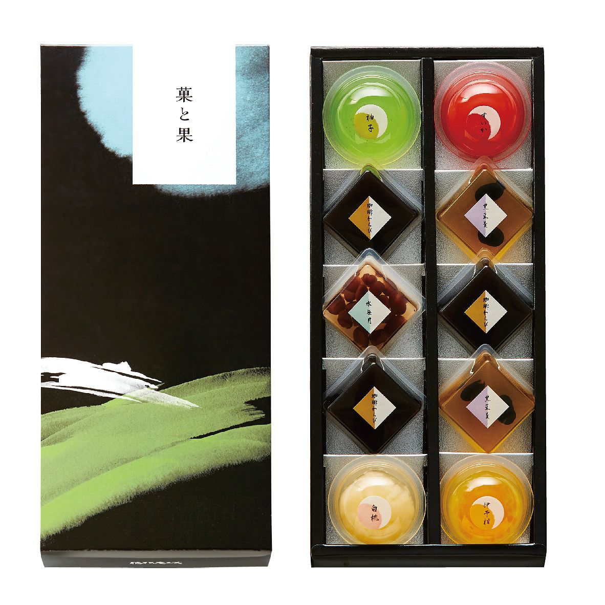 禮盒中包含:黑豆羹、紅豆羹、咖啡餅、果凍。嚴選北海道豆製成的傳統「黑豆羹」,搭配北海產小豆及調製而成的紅豆羹。咖啡蕨餅使用咖啡搭配日本餅製作,果凍則是選用日本水果製成。