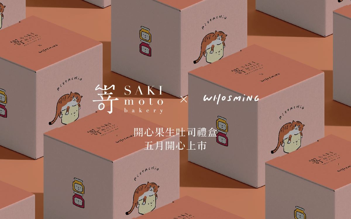 SAKImoto Bakery 開心果生吐司禮盒可採官網預購,5/6 下午即開始在各門市提供現貨,目前包含台北市府旗艦店、台北101店、台北新光南西店、新北板橋大遠百店、高雄美術館店、高雄巨蛋店皆有上架之外,於 SAKImoto 忠孝復興快閃店 5/6,7, 13,14,以及台中新光三越快閃店 5/6,7 皆有販售,想把 WHOSMiNG 的可愛插畫帶回家收藏或一睹開心果生吐司的濃醇魅力,千萬不可錯過!
