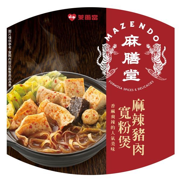 而食辣少不了的靈魂食材「寬冬粉」,萊爾富也推出另一款麻膳堂麻辣豬肉寬粉煲(售價89元),先以高麗菜、凍豆腐、豬肉、小貢丸、豬血糕、酸菜等食材,搭配《麻膳堂》獨家特調的麻辣醬與多種辣椒爆炒成麻辣湯底,再將口感Q彈的寬粉放入香氣迷人的麻辣湯底中燉煮入味,味道鮮香濃郁而無嗆鼻感,並加入獨特的辣油,創造食材多層次的豐富變化,讓每一口不僅嚐得到尾韻的過癮辣度,更是嗜辣族午、晚餐必嚐的美味佳餚之一。