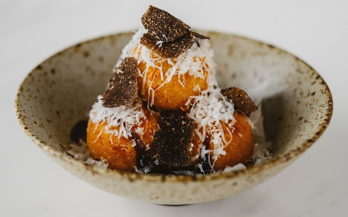 炸松露奶油燉飯球、新鮮黑松露&巴薩米克醋 NT 250