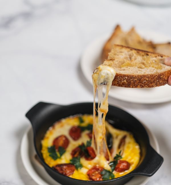 烤帕芙洛尼起司、地中海辣甜椒醬&酸種麵包 NT 240
