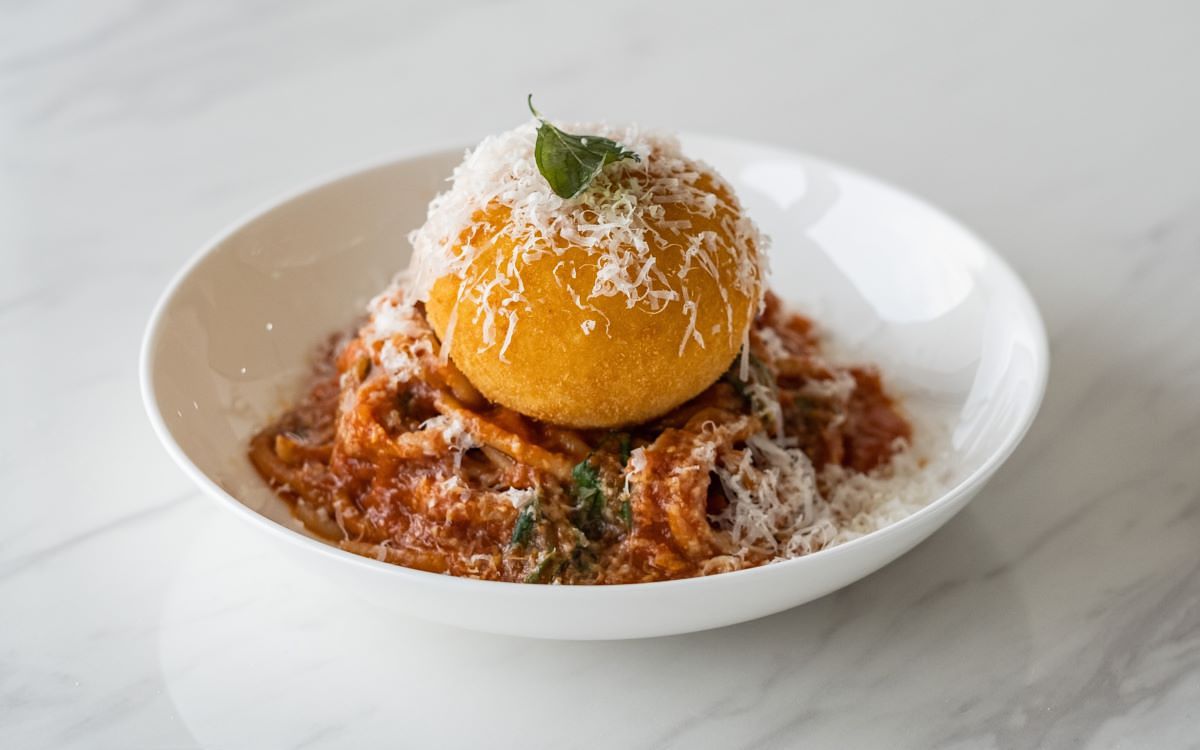 從小在美國紐約成長的Chef Timothy,將多款義式經典美食融入創意及兒時回憶,呈現獨特風味。「義式炸餡餅」Panzerotti是義大利中南部庶民美食,也是Chef Timothy小時候媽媽上班前為他準備的美國微波食品HOT POCKET,彷彿一整個披薩翻轉對折酥炸,濃香飽足,沾特調辣蜂蜜醬甜辣夠味;「紹興酒香脆皮豬肉卷」Porchetta為源自義大利中部的傳統節慶烤豬肉料理,主廚以紹興酒醃製豬五花及小里肌賦予熟悉亞洲風味,經過四天醃漬風乾再慢烤至金黃酥香,佐焦糖魚露醬鹹甜酸鮮平衡肉卷豐腴;「BLT義式炸圓餅」將義大利街頭美食Crescentina精巧可愛的油炸小圓餅結合經典美式BLT(培根、生菜、番茄)元素,焦糖培根迷人鹹甜及金山寺味噌調製的酸奶醬賦予酸甜明亮滋味;「炸松露奶油燉飯球」為西西里島著名小吃Arancini炸飯糰穿上貴氣新鮮黑松露外套,撲鼻馨香誘人食指大動;「番茄鮪魚醬沙拉」以義大利經典三色沙拉Caprese Salad番茄、起司、羅勒三種元素及色彩為本,融合自製鮪魚醬鹹鮮開胃;「烤帕芙洛尼起司」半融起司濃郁牽絲佐酸種麵包及自製哈里薩辣醬的甜辣煙燻,則是義大利豪邁街頭小吃吊掛起司炭烤麵包的優雅版;經典美式義大利家常菜「酸甜烤雞」微稠酸甜醬汁裹覆香嫩烤雞腿,醃漬香蕉辣椒特有的酸辣昇華烤雞美味。