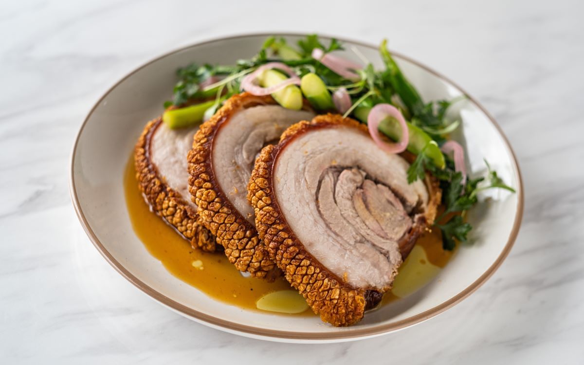 紹興酒香脆皮豬肉卷,芥藍&焦糖魚露醬 NT 790